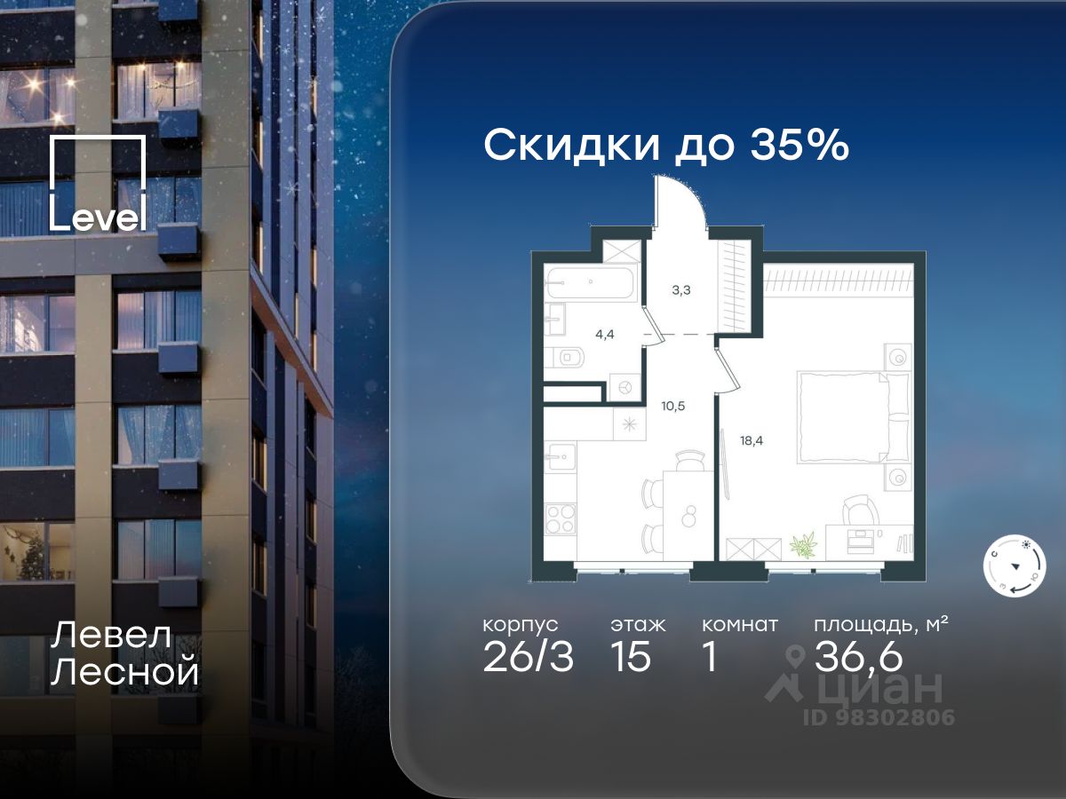 В районе, утопающем в густой зелени лесов, многочисленных парков и скверов, продаётся 1-комнатная квартира площадью 36.60 кв.м без отделки. Квартира расположена на 15 этаже в жилом комплексе комфорт-класса Левел Лесной (компания Level Group/Левел групп).