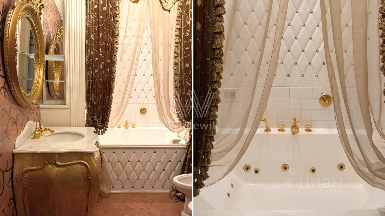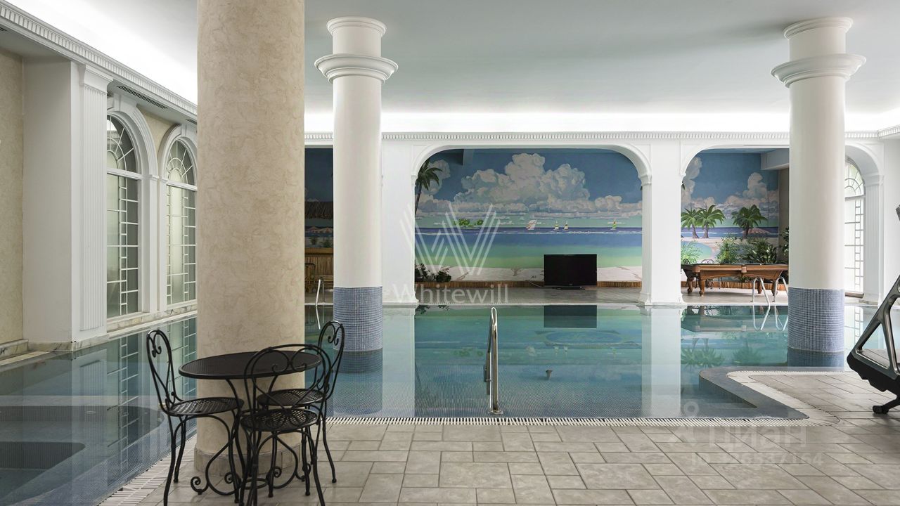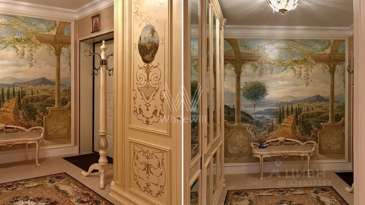 Просторная квартира с тремя спальнями общей площадью 194 м² в клубном доме ''Агаларов Хаус'' на третьем этаже. Интерьер оформлен в дворцовом стиле с использованием натуральных материалов. На полу выложены паркет из карельской березы с уникальной ''мраморной структурой'' и итальянская мозаика. На стенах обои Zambotti и художественная роспись. Ванные комнаты отделаны мрамором и украшены аксессуарами Lalique.
