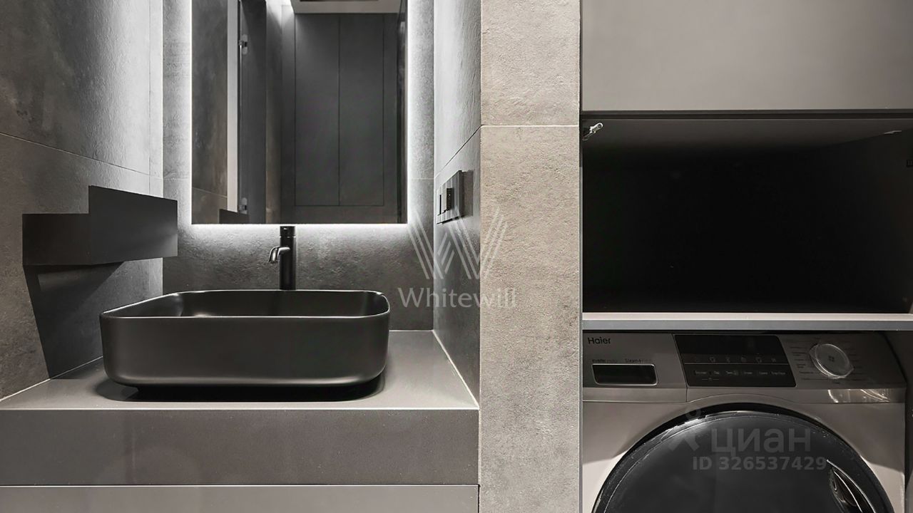 Установлены теплые полы, индивидуальная проточно-вытяжная система кондиционирования, фильтры на воду, видеонаблюдение и кодовый электронный замок на двери. Сантехника представлена брендом Акватек. Вся бытовая техника Haier: стиральная машина, посудомойка, духовой шкаф, электрическая панель, холодильник, вытяжка. Предусмотрены различные сценарии освещения, все шкафы с подсветкой.