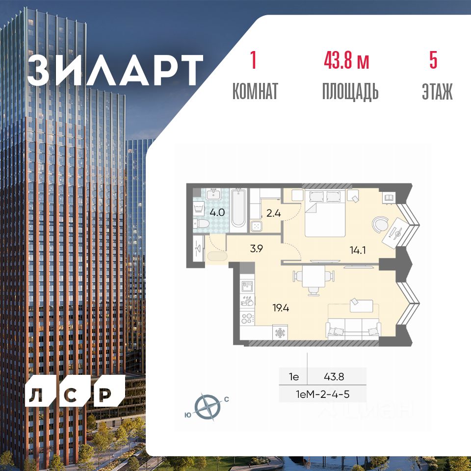 продам 1-к, Зиларт ЖК, 21/2224 611 439 ₽