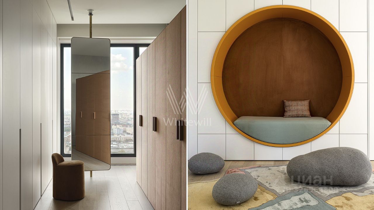 Просторная квартира площадью 287 м² в комплексе премиум-класса Prime Park. С высоты тридцать пятого этажа открываются захватывающие виды на Москву. Интерьер выполнен в стиле современного минимализма по проекту AB-Architects. Четкие геометрические линии, тактильные материалы и игра света и воздуха создают атмосферу спокойствия и гармонии.