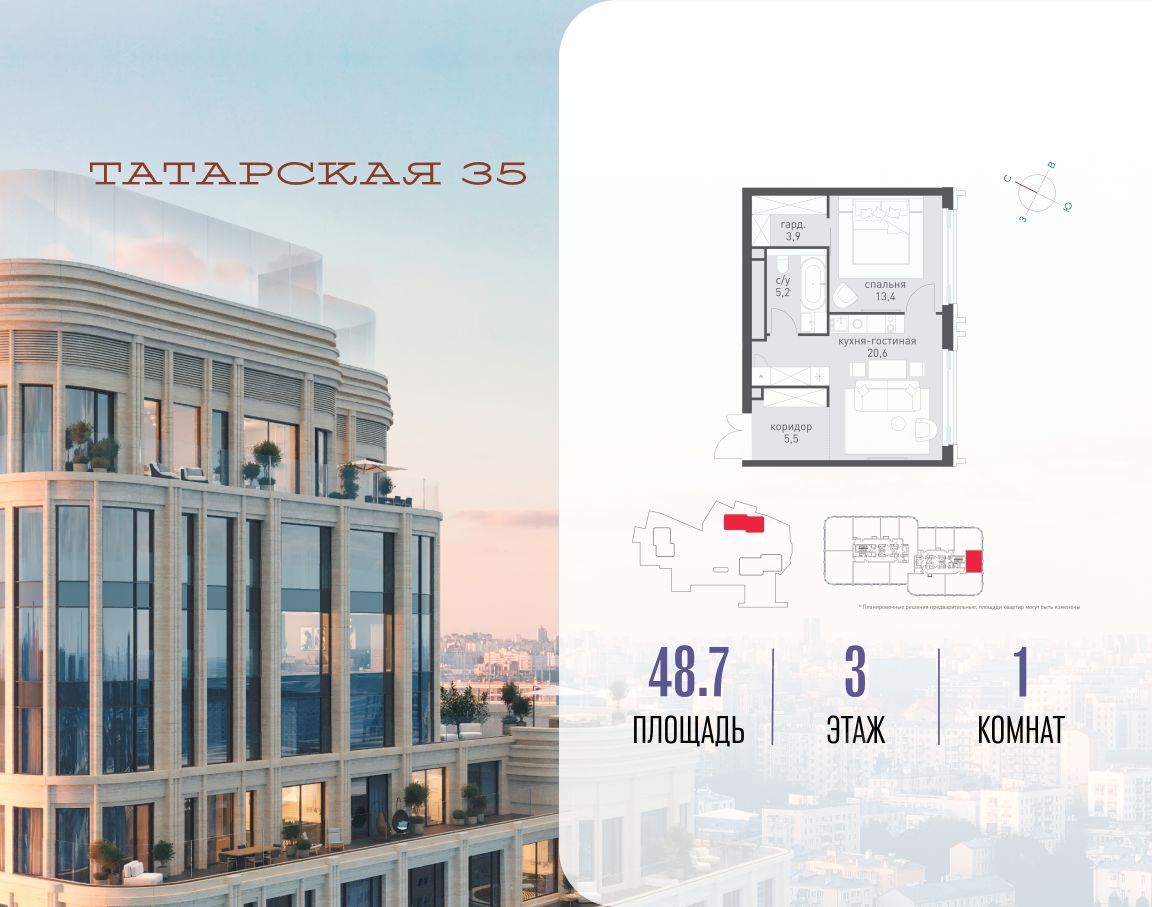 ТАТАРСКАЯ, 35 - новая архитектурная доминанта Замоскворечья, достопримечательность на фотопанорамах исторического центра Москвы. Элитный дом, созданный для тех, кто умеет смотреть далеко вперед, мыслить масштабно и воплощать собственный сценарий жизни.
