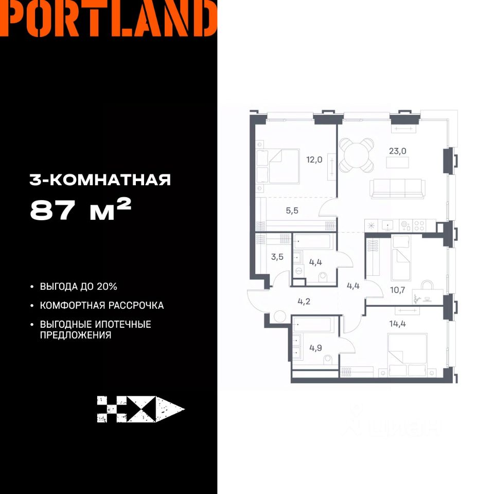 Продаётся 3-к. квартира, 19 этаж в жилом комплексе бизнес-класса Portland от девелопера FORMA. ЖК расположен на берегу Москвы-реки в северной части района Печатники в акватории Южного речного порта. Основные преимущества проекта: • Самая протяженная береговая линия реки в Москве 13 км. • Вид на реку в сторону запада панорамные окна на самое широкое водное пространство Москва-реки (900 м) и на закат. • 95% квартир с видом на воду. • К Portland не примыкает крупных автомагистралей - отсутствие фонового шума дорог. • В перспективе ближайших 11 лет на территории района запланировано грандиозное преобразование и комплексное развитие. • Собственная набережная длиной 412 м., которая после завершения строительства сомкнется с эко-парком Печатники. • Прямой выход к воде и отсутствие проезжей части между Portland и береговой линией. • Инфраструктурное разнообразие: супермаркеты, крупные торговые центры, рестораны, кафе, фитнес-клубы, бьюти-салоны, компании сферы услуг и многое другое. • Собственная школа на 300 мест и детский сад на 275 мест. • Паркинг на 650 м/м • Транспортная вседоступность: метро, авто, велосипед, речной трамвай, канатная дорога • 15 мин. пешком до м. Печатники, 15 мин. на авто до ТТК, 20 минут на авто до Садового кольца