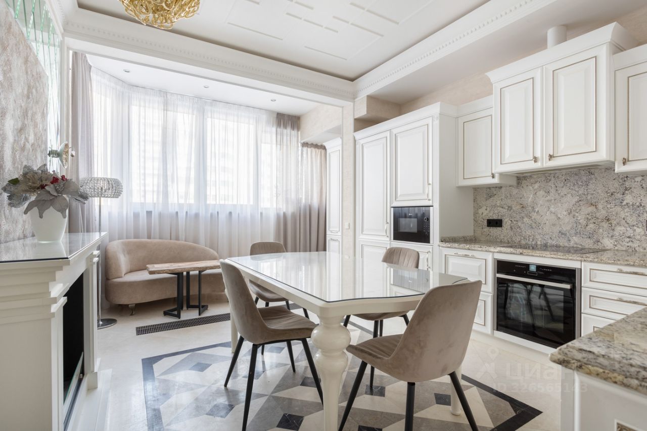 Гостиная с итальянской мебелью и возможностью использования в качестве третьей спальни. В кухне бытовая техника Neff и Liebherr, а кухонный фартук и столешница выполнены из натурального бразильского гранита.