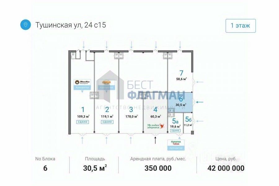 Арт. 123139209 Сдается торговая площадь, 30,5м², в торговом центре ''на ул. Тушинская, 24с15'' Площадь: 30,5 м² Этаж: 1 из 1 Помещение: Свободно