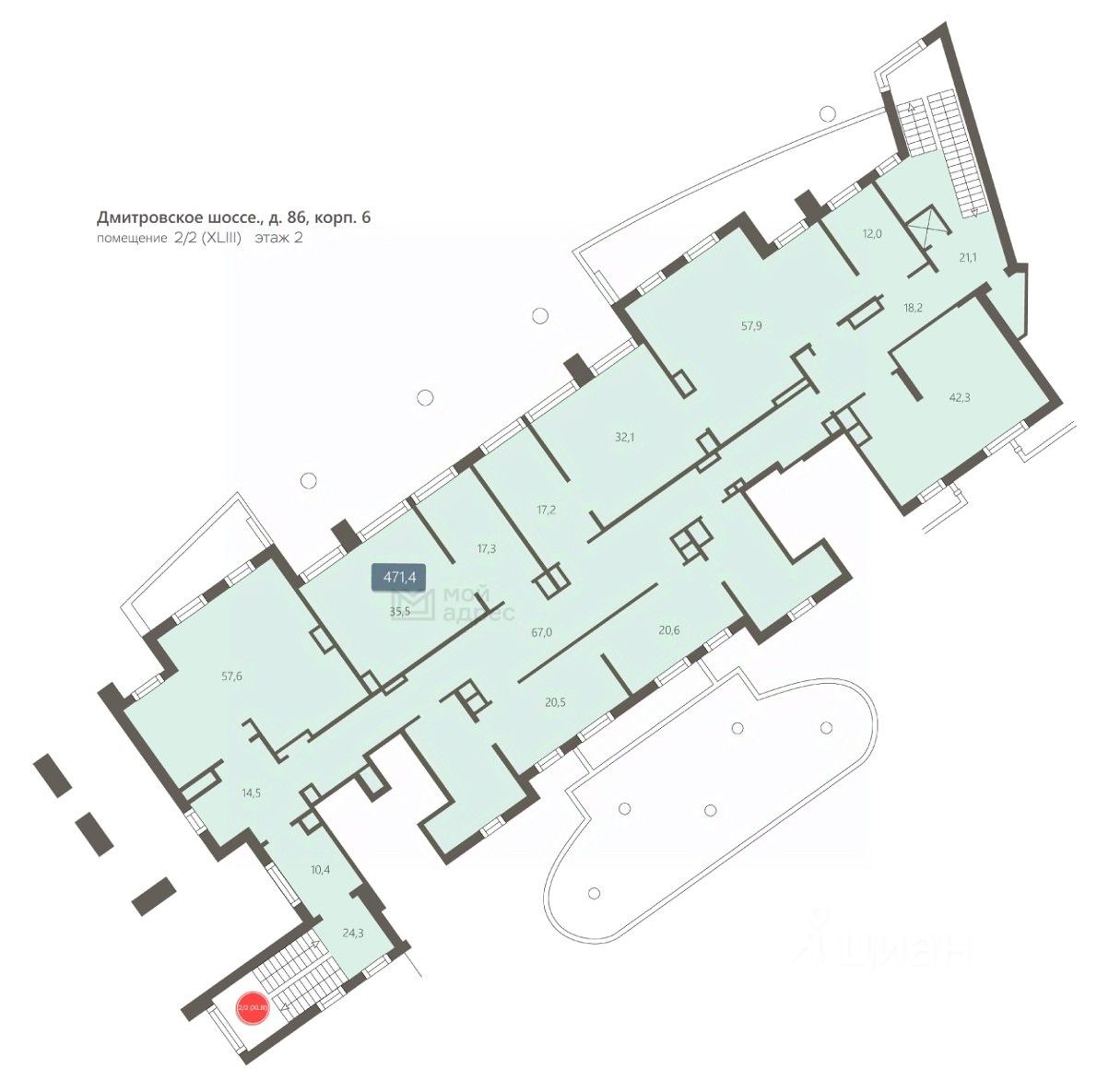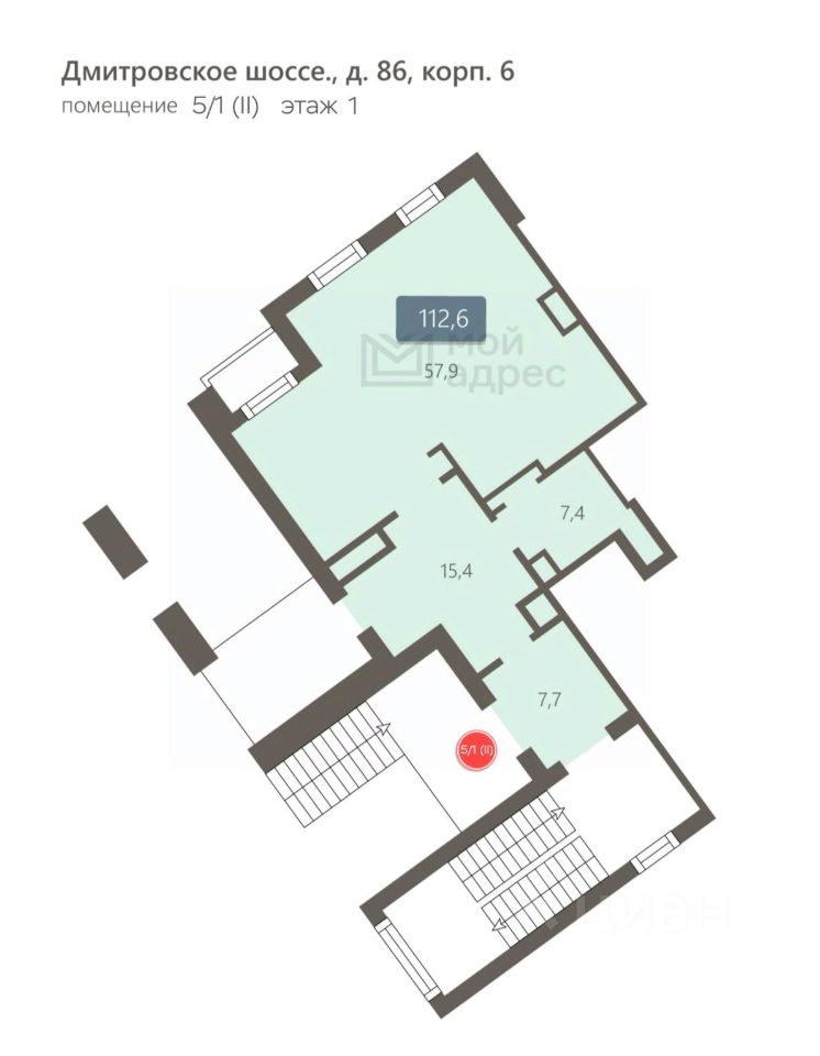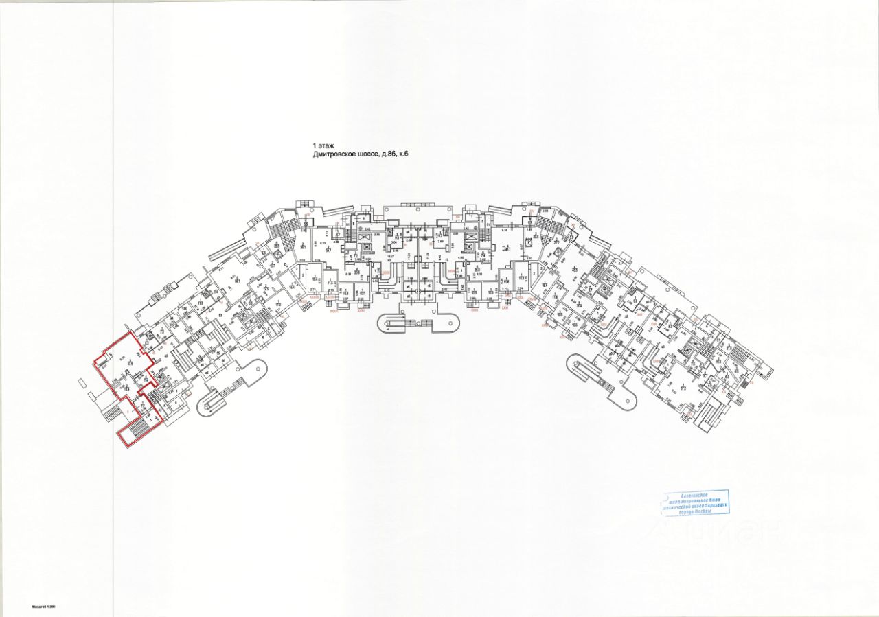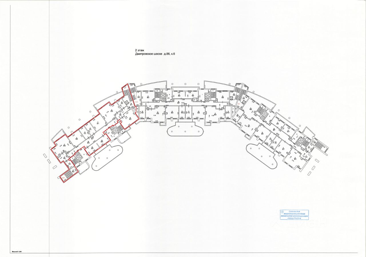 Коммерческое помещение площадью 707.6 м², расположено по адресу: г. Москва, Дмитровское шоссе, 86к6, помещения 5/1 (II), 2/1 (VII), 2/2 (XLIII), район Бескудниковский. Объект занимает 1, 2 этажи в здании с этажностью 17 этажей. Помещение без отделки, свободного назначения, имеет отдельный вход.