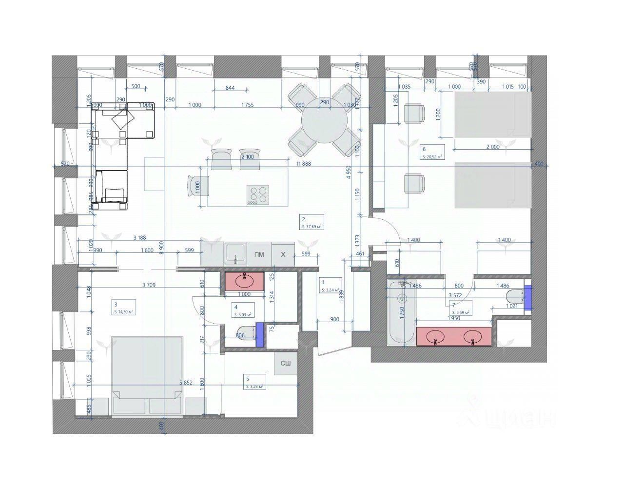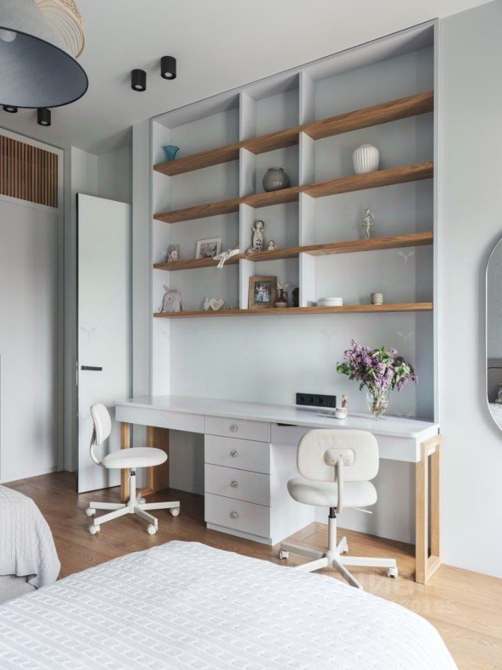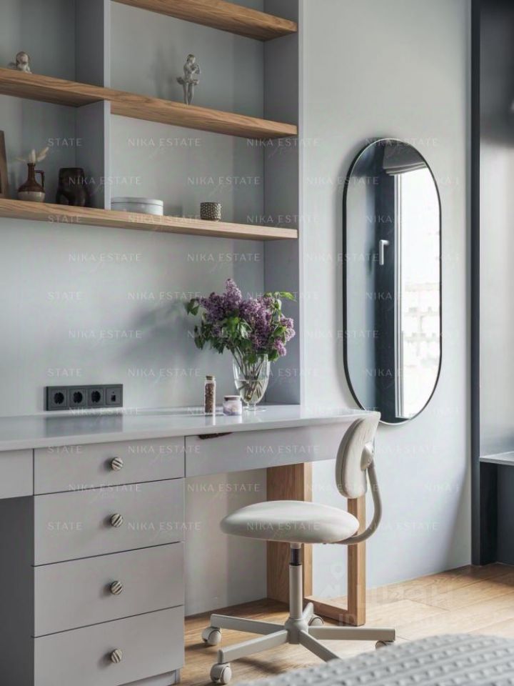 Планировка: - Просторная и светлая кухня-гостиная 38 кв.м, мастер-спальня со своим санузлом (душевая) и гардеробной, детская (две кровати с рабочей зоной) со своим санузлом (ванная). Планировка максимально рациональная, без потери площади на коридоры. Квартира угловая (юго-запад и запад).