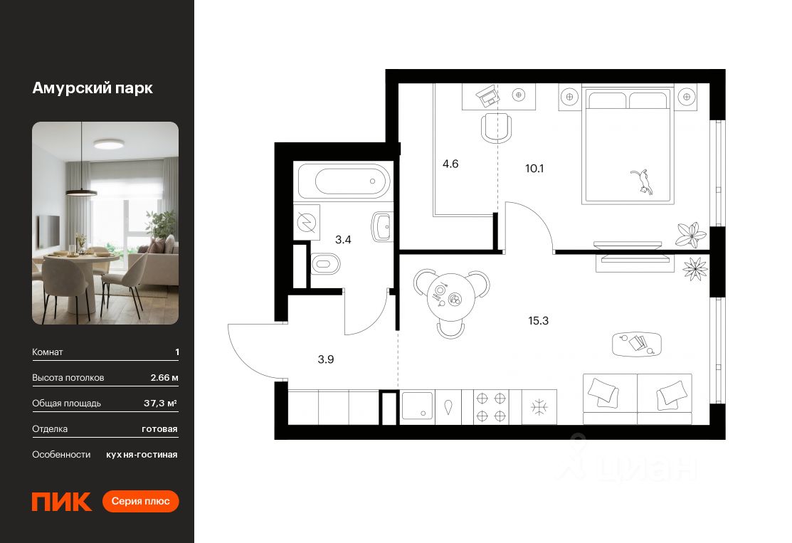 продам 1-к, Амурский парк ЖК, 4.516 248 626 ₽