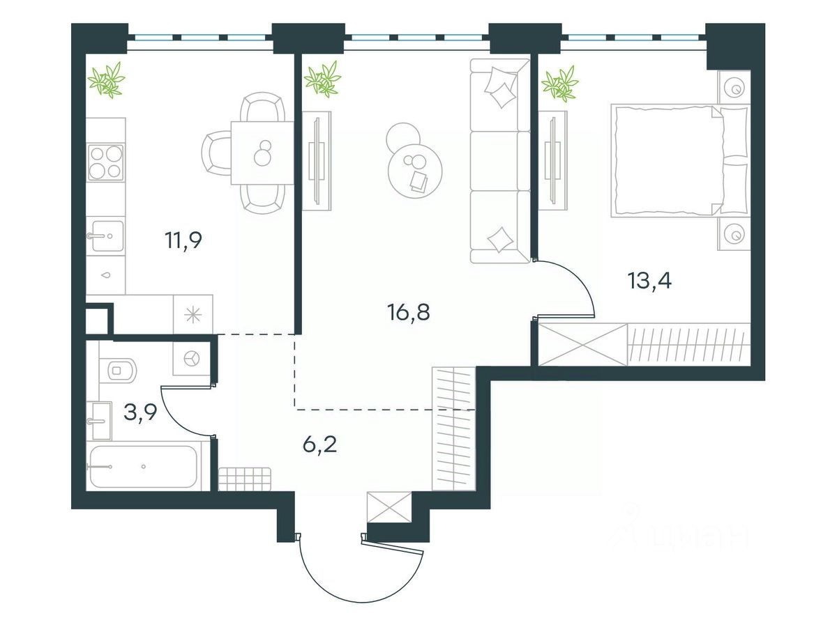 Цена указана с учётом скидки при 100%-й оплате, несубсидированной ипотеке, рассрочке (кроме программы ''Рассрочка 0%'').
