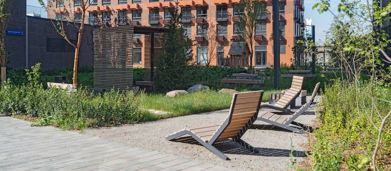В проекте предусмотрена медленная зона для электросамокатов — с 7 утра до полуночи при въезде на территорию квартала скорость электросамокатов автоматически снижается до 15 км/ч. Артикул 891396 (Застройщик ООО Специализированный застройщик ''ДРСУ-34'')
