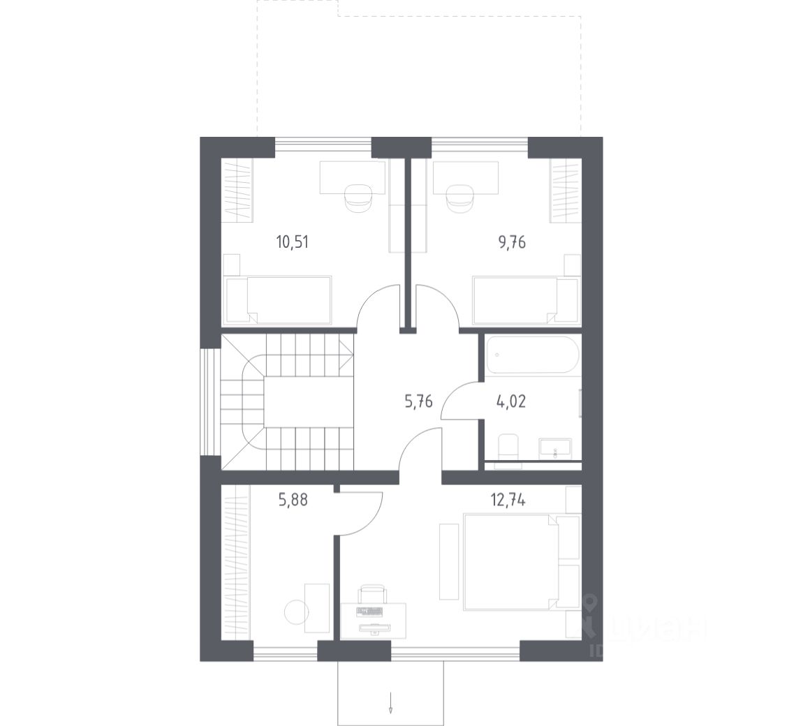 В базовую комплектацию включена металлическая входная дверь, двухкамерные стеклопакеты. Отсутствие межкомнатных перегородок позволит вам адаптировать пространство под себя.