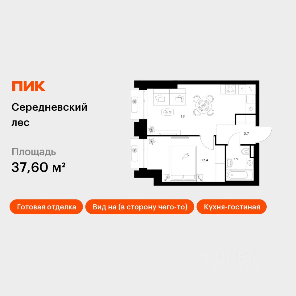 Продаётся 1-комн. квартира площадью 37,6 кв.м на 13 этаже 16 этажного дома (Корпус 2.1.6, Секция 6) проекта ПИК Середневский лес. Светлый просторный подъезд на уровне земли, функциональная планировка, большие окна, c отделкой.