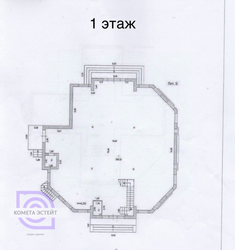 Здание площадью 444 м², 2012 года постройки, имеет 2 этажа.