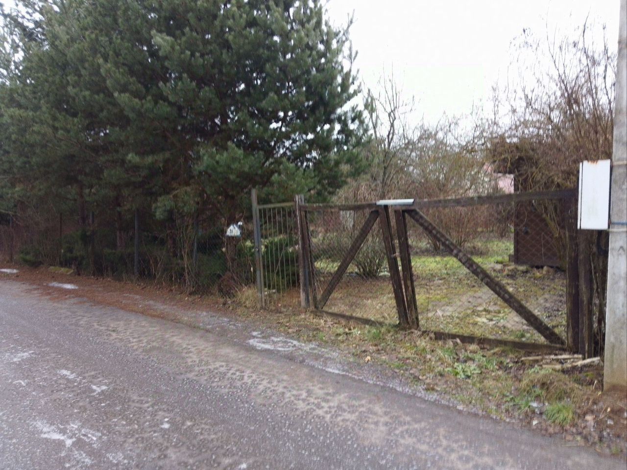 На участке есть скважина, бытовка, плодовые деревья, ели.