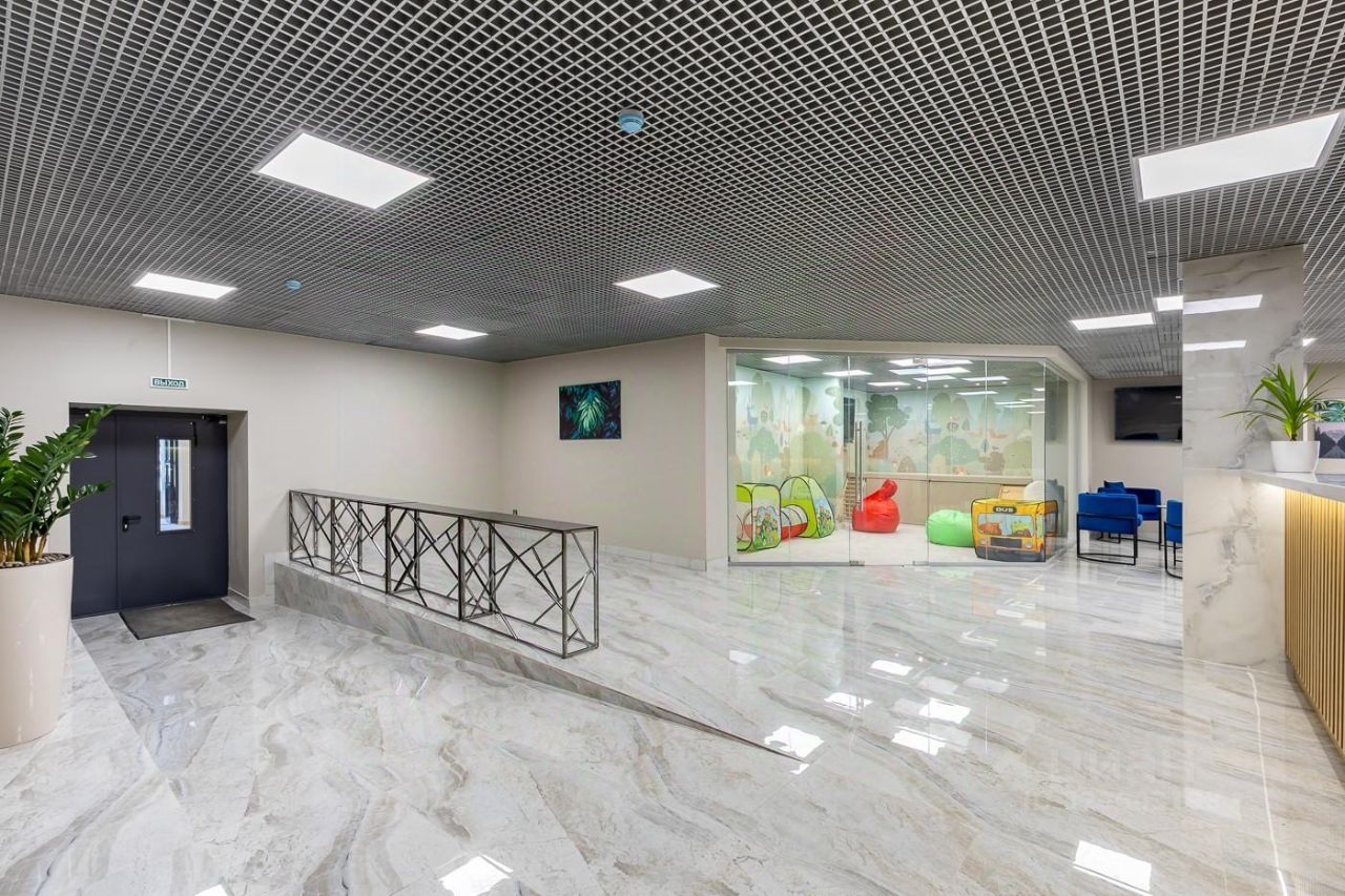 - В холле расположено лобби со стойкой ресепшн и лаунж зоны. При входе предусмотрено место хранения детского транспорта и колясок - Спортивный зал, хамам, зона коворкинга всё для комфортного проживания - На огороженной безопасной зеленой территории расположены спортивная площадка и места отдыха, оборудован паркинг