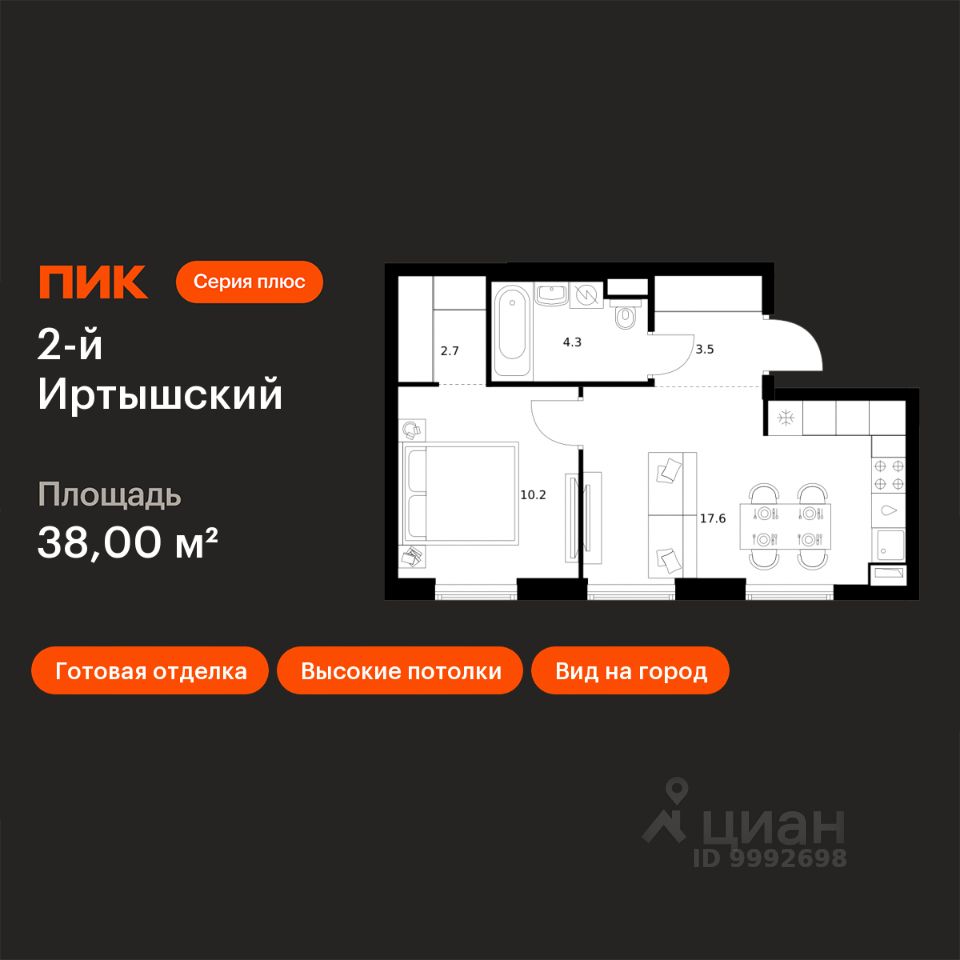 Продаётся 1-комн. квартира площадью 38 кв.м на 3 этаже 43 этажного дома (Корпус 1.1, Секция 1) проекта ПИК 2-й Иртышский. Светлый просторный подъезд на уровне земли, функциональная планировка, большие окна, c отделкой.