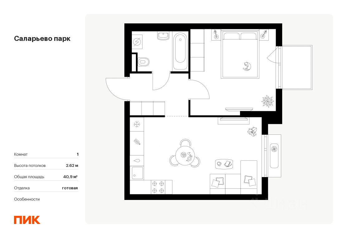 Продаётся 1-комн. квартира площадью 40,9 кв.м на 3 этаже 14 этажного дома (Корпус 69.2, Секция 2) проекта ПИК Саларьево парк. Светлый просторный подъезд на уровне земли, функциональная планировка, большие окна, c отделкой.