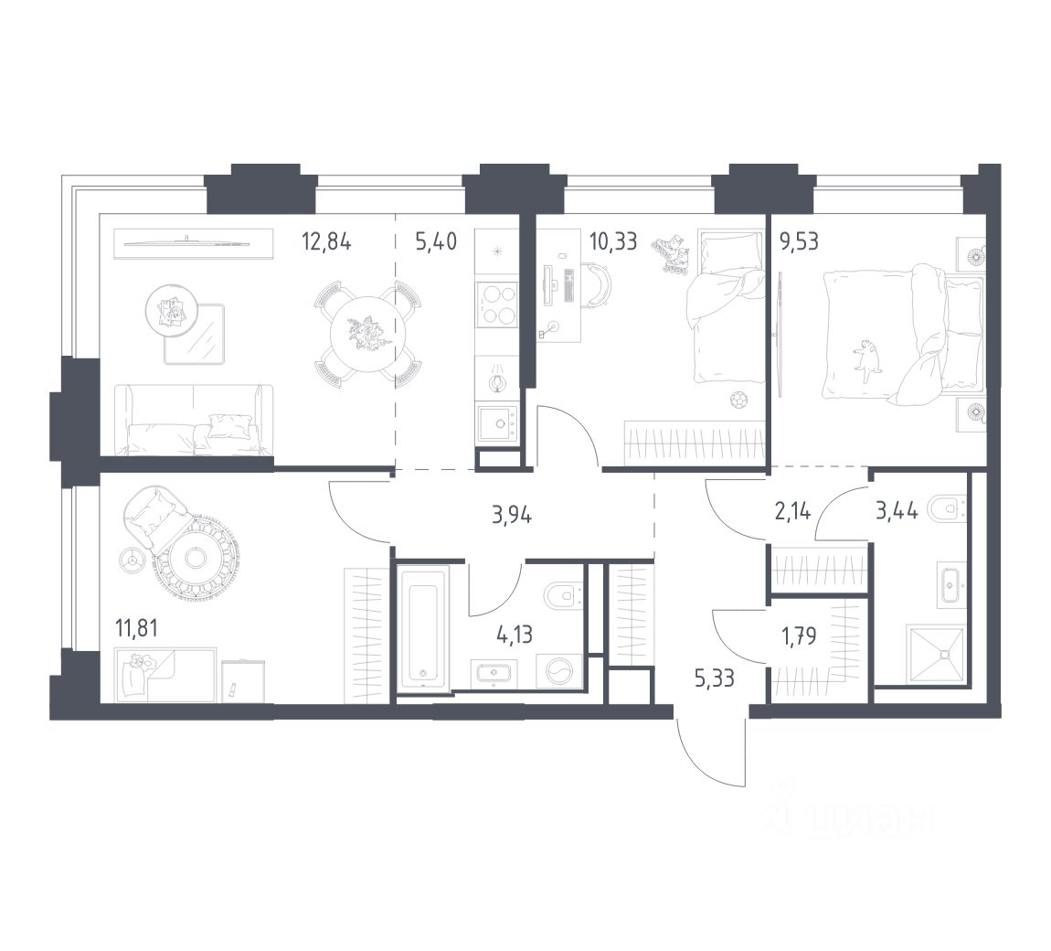 Строим кварталы для жизни с заботой о будущем. Предлагаются 3-комнатные апартаменты бизнес-класса площадью 70,68 кв.м в корпусе 3.2 на 4-м этаже, в жилом комплексе ''Верейская 41''.