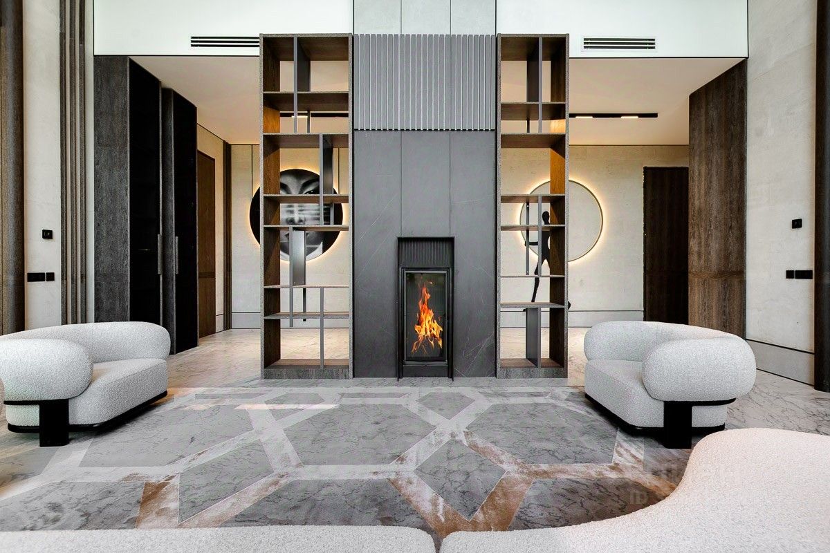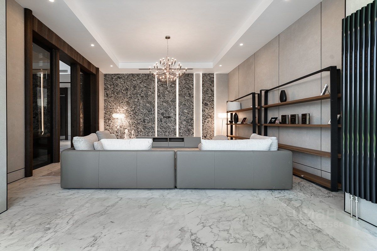Поэтажное описание: 1 этаж - прихожая, гостиная, кухня, столовая, каминный зал, спальня, с/у, бассейн, сауна, хамам, крытая терраса, гараж, 2 этаж - мастер-спальня с собственными с/у и гардеробной, спальня с с/у и гардеробной, спальня с с/у, кабинет, постирочная.