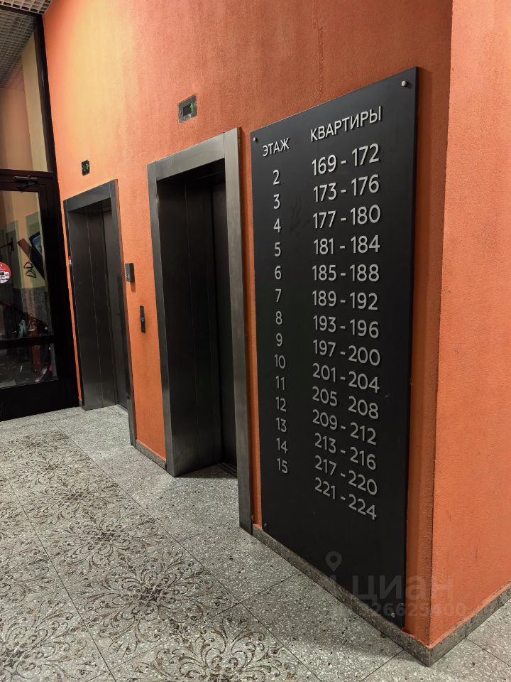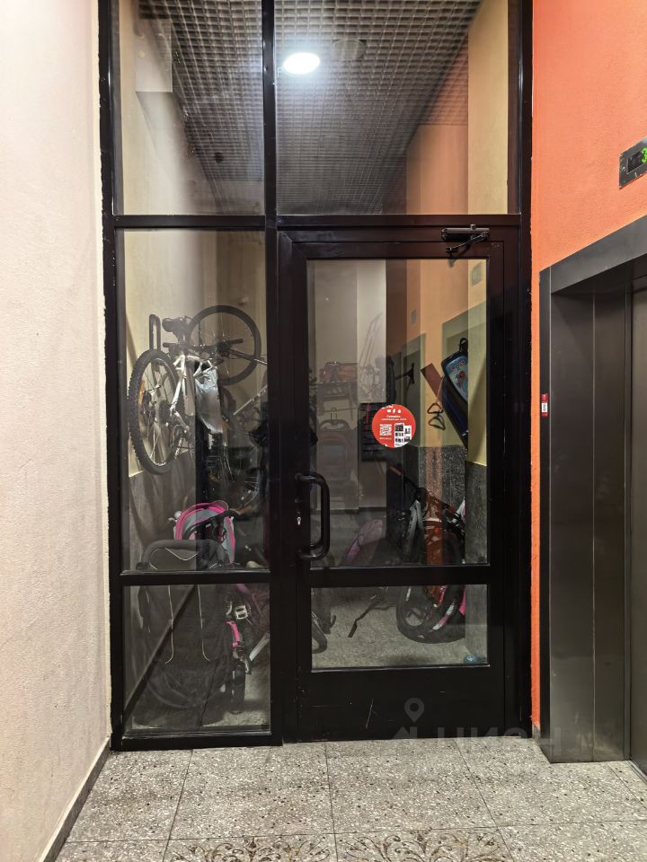 Находится на 11 этаже, в подъезде есть 2 лифта (грузовой и пассажирский) и колясочная.