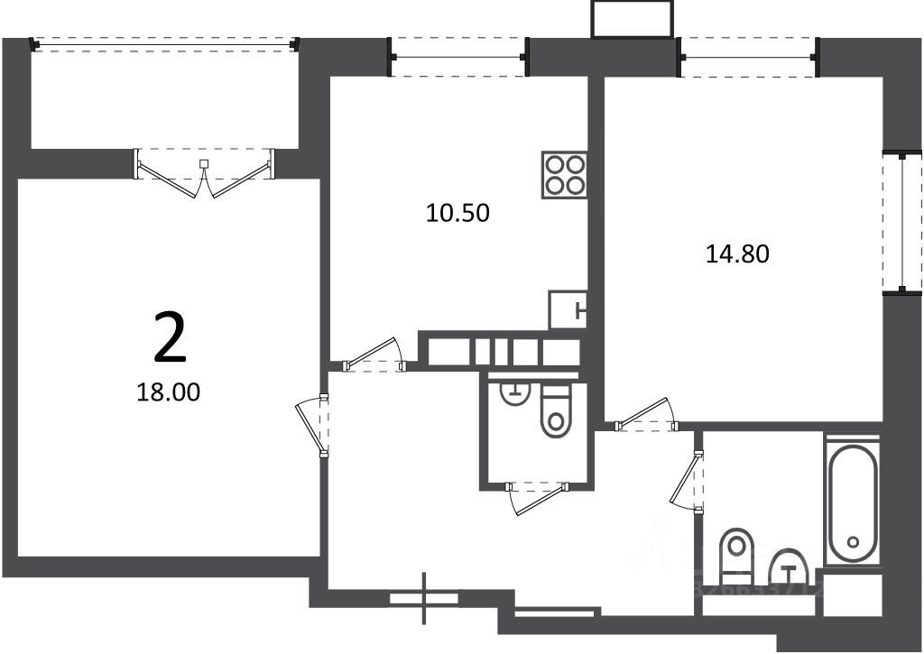Добротный ремонт от застройщика. Два санузла, остекленная лоджия из спальни. В коридоре много места для шкафов.