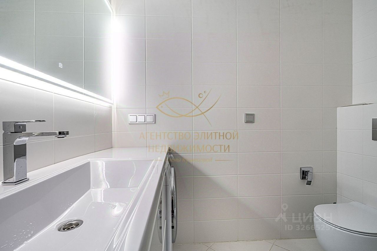 Полная комплектация: Встроенная бытовая техника (холодильник, духовой шкаф, посудомоечная машина, микроволновая печь и вытяжка), стиральная машина с функцией сушки, телевизор, теплый пол, мультисистема кондиционирования по всей квартире с функцией очистки воздуха.