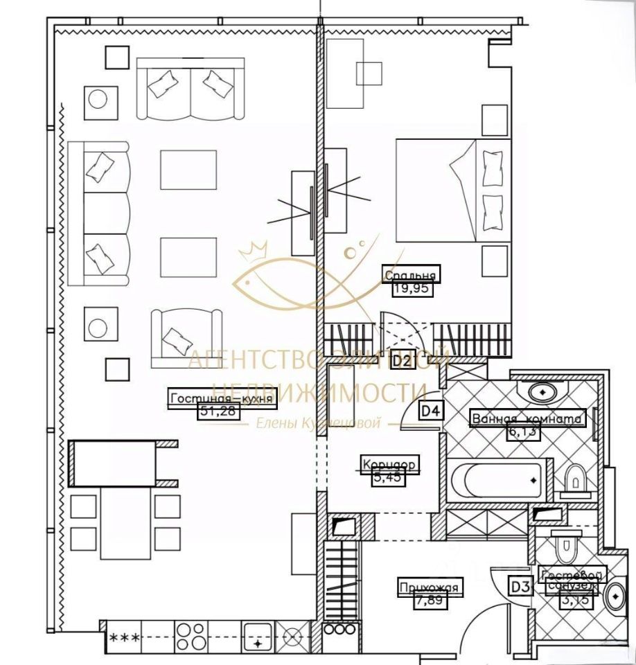 Мебель: полная комплектация шикарной мебелью всего пространства.