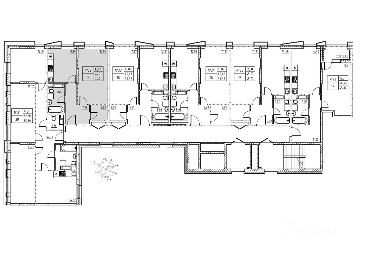 Общая площадь44,01 м2