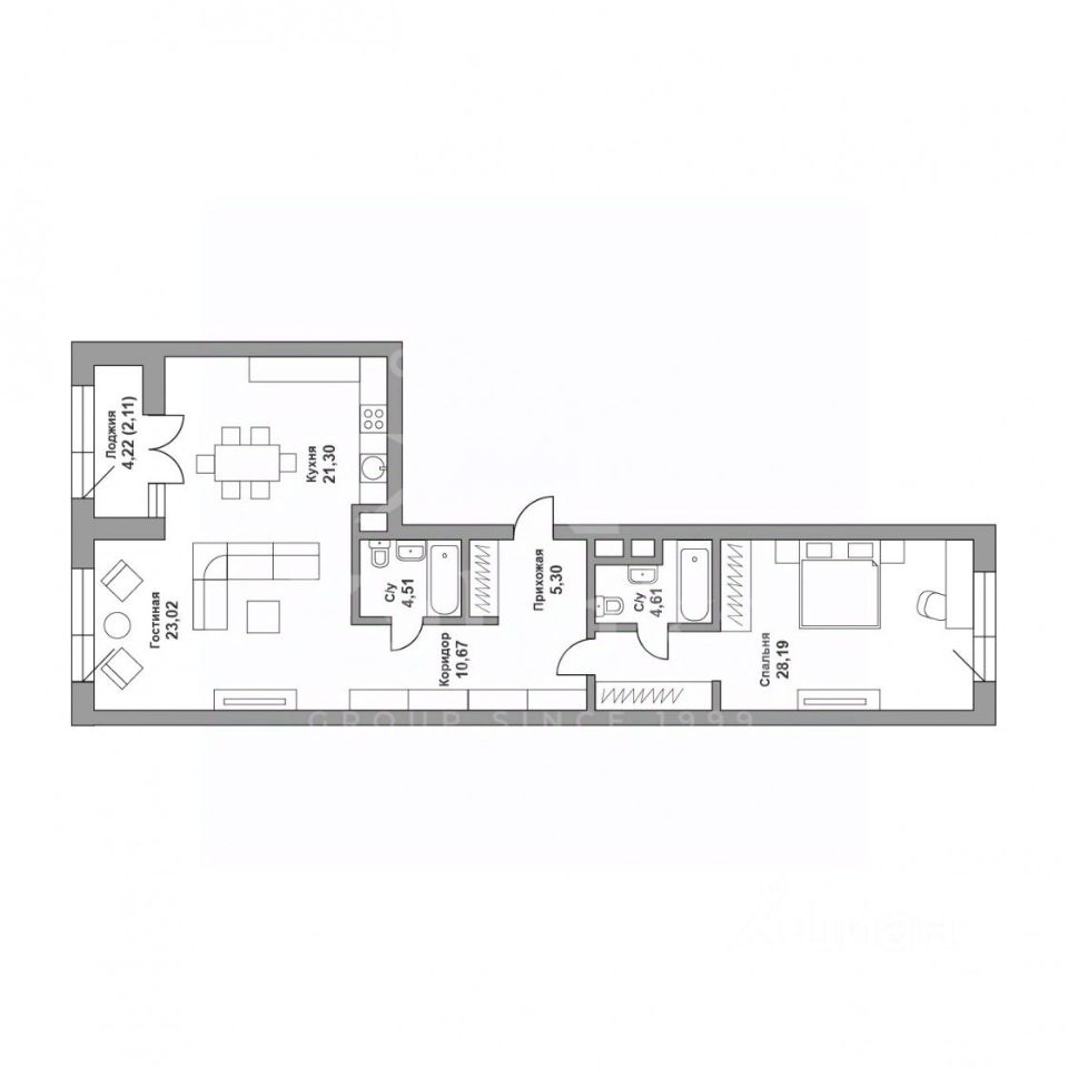 На продажу предлагается квартира свободной планировки площадью 99,71 кв. метров. Планировка включает в себя гостиную, спальню, кухню с лоджией и две ванные комнаты. При объединении кухни с гостиной, возможно спланировать две спальни. Из окон открываются виды на две стороны: на внутренний двор и на улицу Усачева.