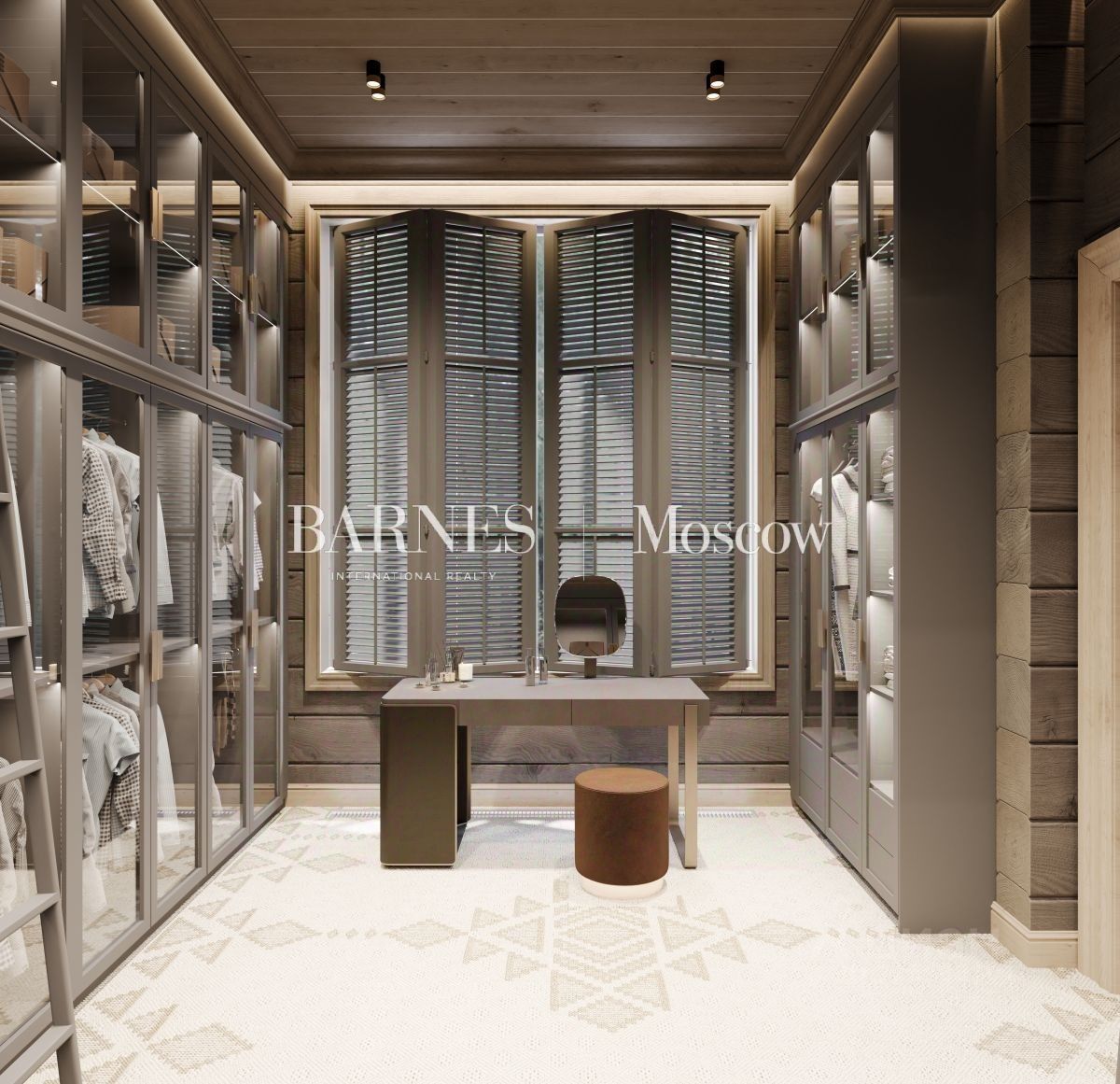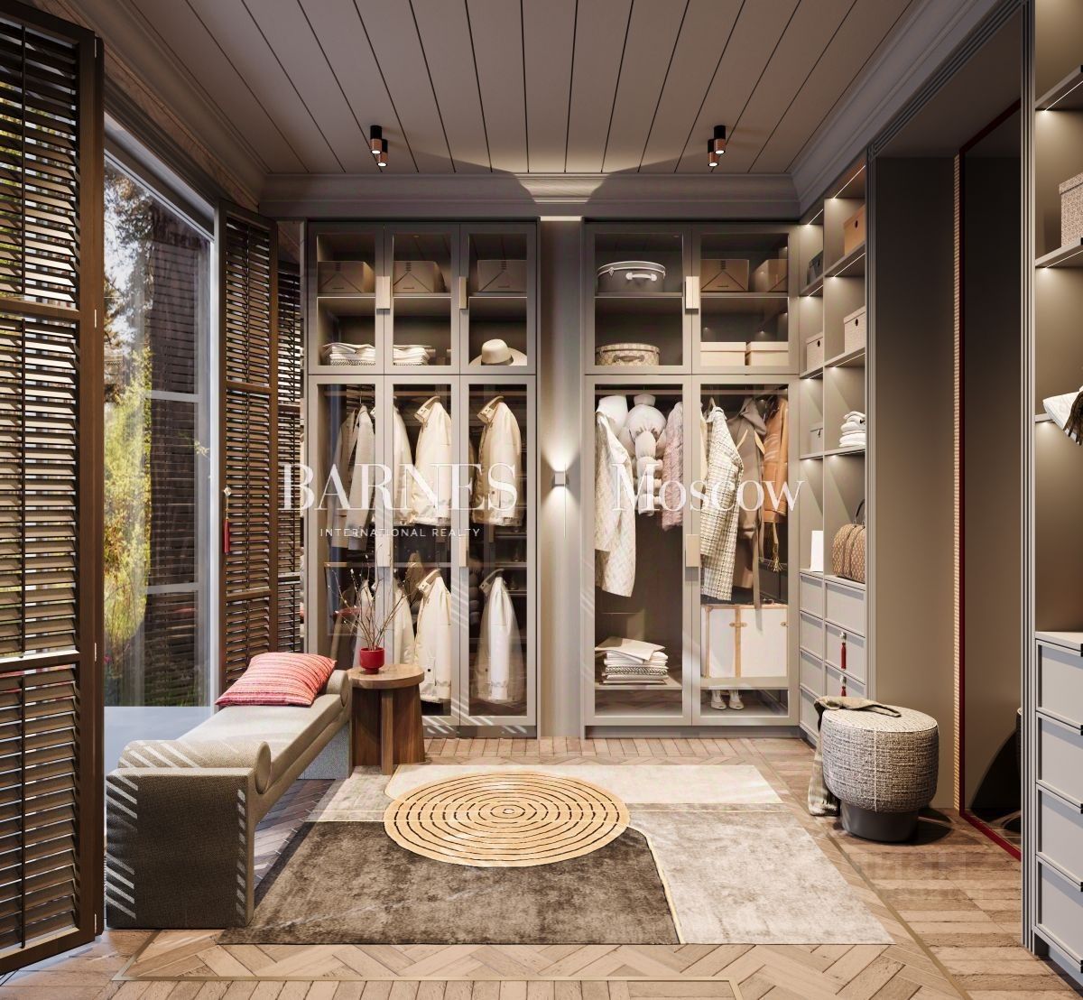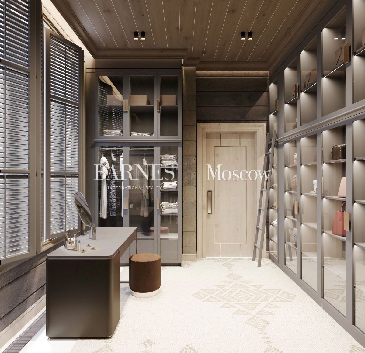 Дом состоит из 2 этажей. На первом этаже расположены: прихожая, техническое помещение, санузел, спальня с гардеробом и санузлом и гостиная. Также есть гардеробная, постирочная комната, столовая, кухня и терраса. Второй этаж включает в себя: холл, 4 балкона, 3 спальни с гардеробами и санузлами.