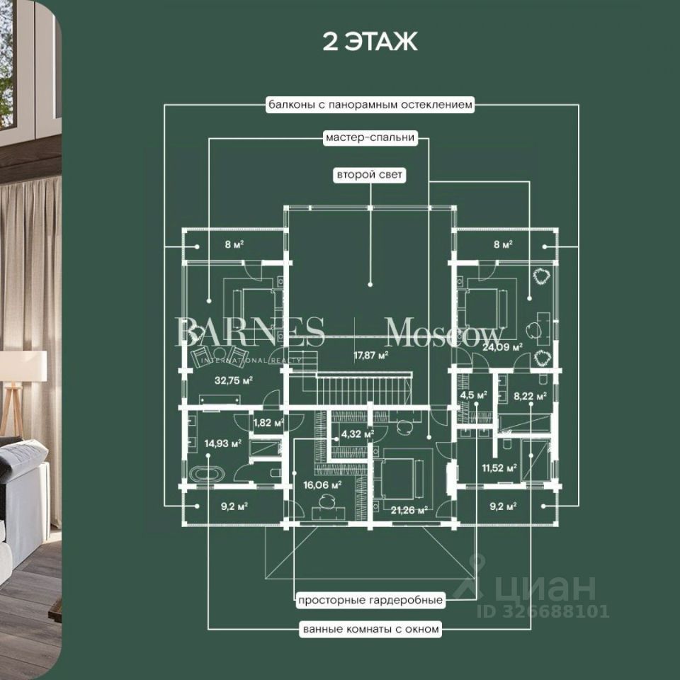 ID: 559749 Продается уникальный дом из клееного бруса общей площадью 562,5 кв.м. участок 24,8 соток на территории загородного клуба премиум-класса ''Изумрудный лес''. Резиденция ''Залесье'' создана в сотрудничестве с 5-звездочным отелем Cosmos Collection и сочетает в себе все преимущества этих проектов.