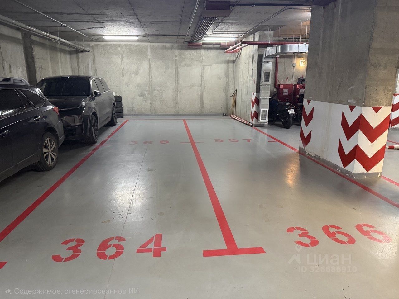 Парковочное место для двух автомобилей (семейное) 24м2. Сухое, без протечек с потолка. Расположено под 4-м корпусом в ЖК Триколор. Номер мест 364-365. Въезд осуществляется через ворота под вывеской World Class