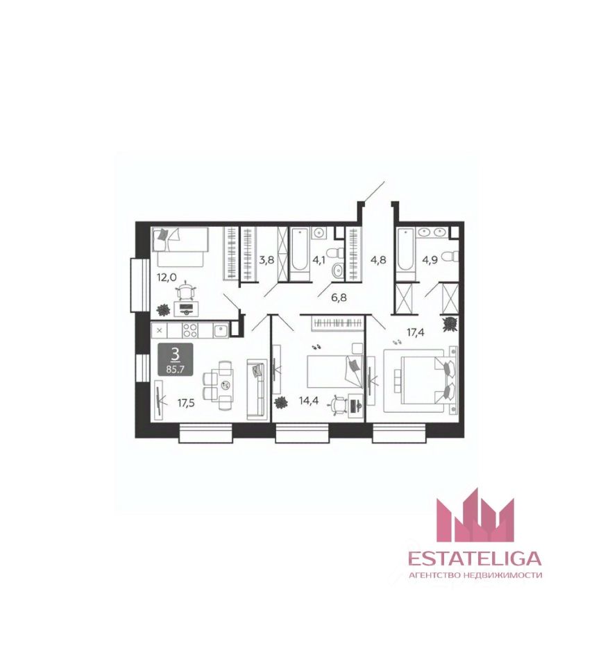 Евроформат: Уютная кухня-гостиная (площадью 12 кв.м.) станет сердцем дома, а три изолированные спальни обеспечат личное пространство для всех членов семьи. Малоэтажность: Дом расположен в малоэтажном корпусе. Это значит мало соседей на этаже, отсутствие ''муравейника'' и особый уют загородного образа жизни в черте города.