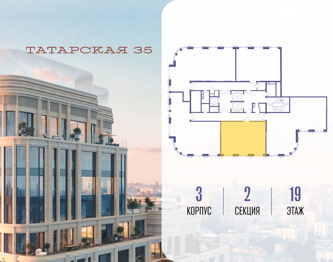 ТАТАРСКАЯ, 35 - новая архитектурная доминанта Замоскворечья, достопримечательность на фотопанорамах исторического центра Москвы. Элитный дом, созданный для тех, кто умеет смотреть далеко вперед, мыслить масштабно и воплощать собственный сценарий жизни.