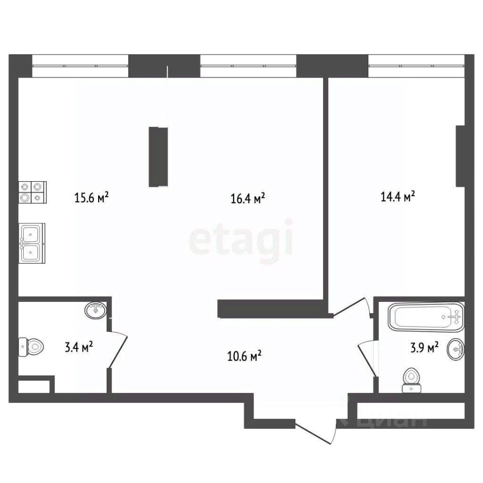 Потолки 3,15 м: Ощущение объема и максимум естественного света. Функционал: 2 санузла и просторная кухня-гостиная 15,6 м².