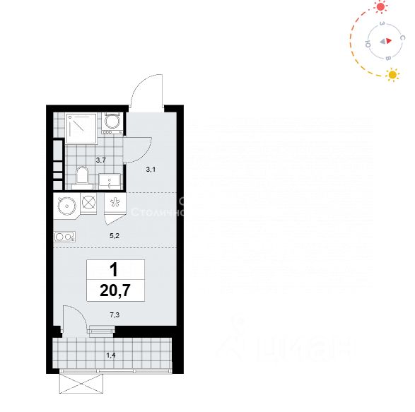 Арт. 129889628 Продается студия, площадью 20,7 м2.