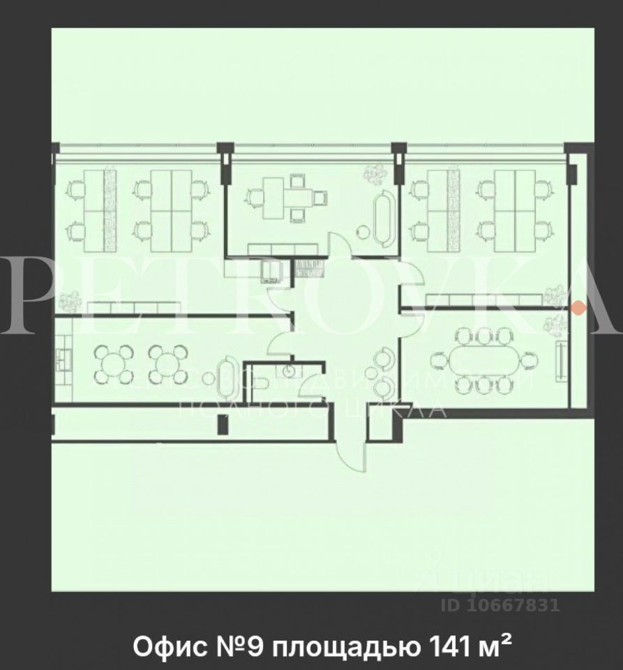 Характеристики лота: Офисный блок 141 м² с панорамными окнами, отдельным входом и готовой планировкой.