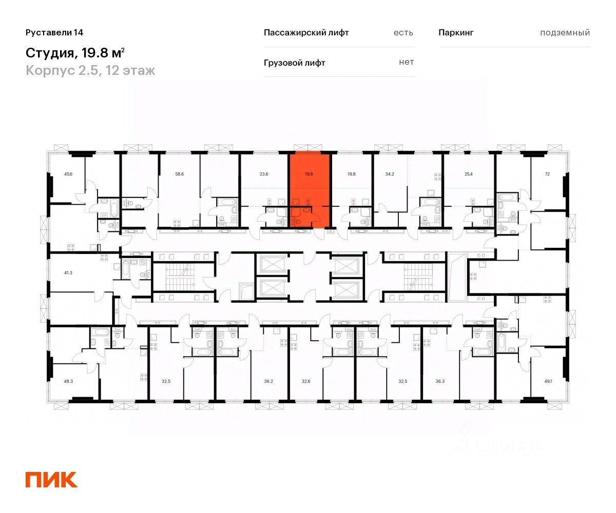Продаётся квартира-студия площадью 20,1 кв.м на 12 этаже 33 этажного дома (Корпус 2.5, Секция 1) проекта ПИК Руставели 14. Светлый просторный подъезд на уровне земли, функциональная планировка, большие окна, c отделкой.