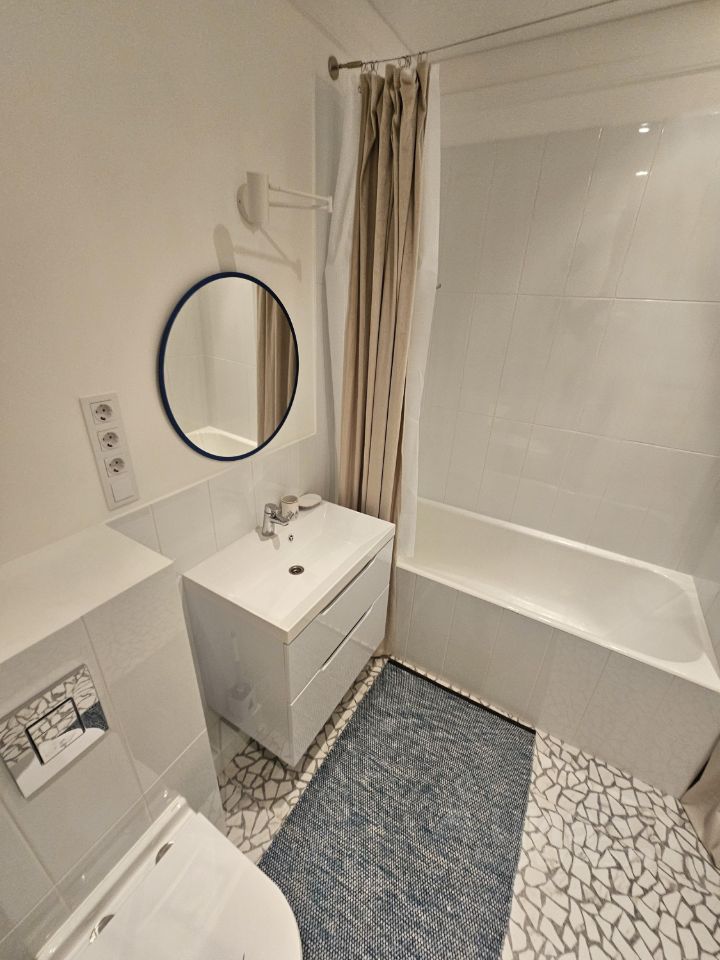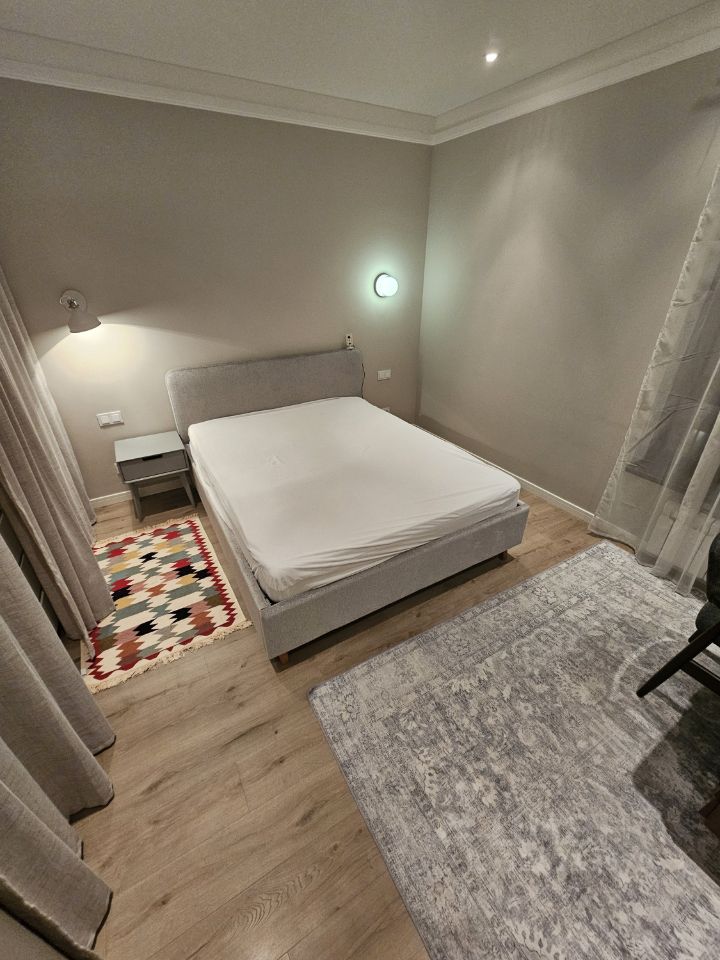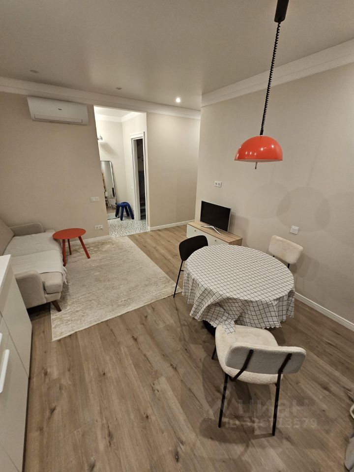 Квартира выполнена в дизайнерском стиле и оснащена всей необходимой мебелью и техникой. Здесь есть кондиционер, холодильник, посудомоечная и стиральная машины, а также телевизор. В квартире предусмотрена раздельный санузел с ванной, а окна выходят во двор, поэтому здесь всегда тихо и уютно. Также есть небольшой балкон, где можно наслаждаться свежим воздухом.