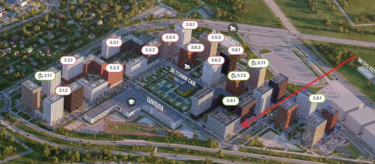 Второй дом от метро! Объект в прямой видимости, вдоль народной тропы, рядом школа и детский сад, в ЖК напротив нет коммерции!