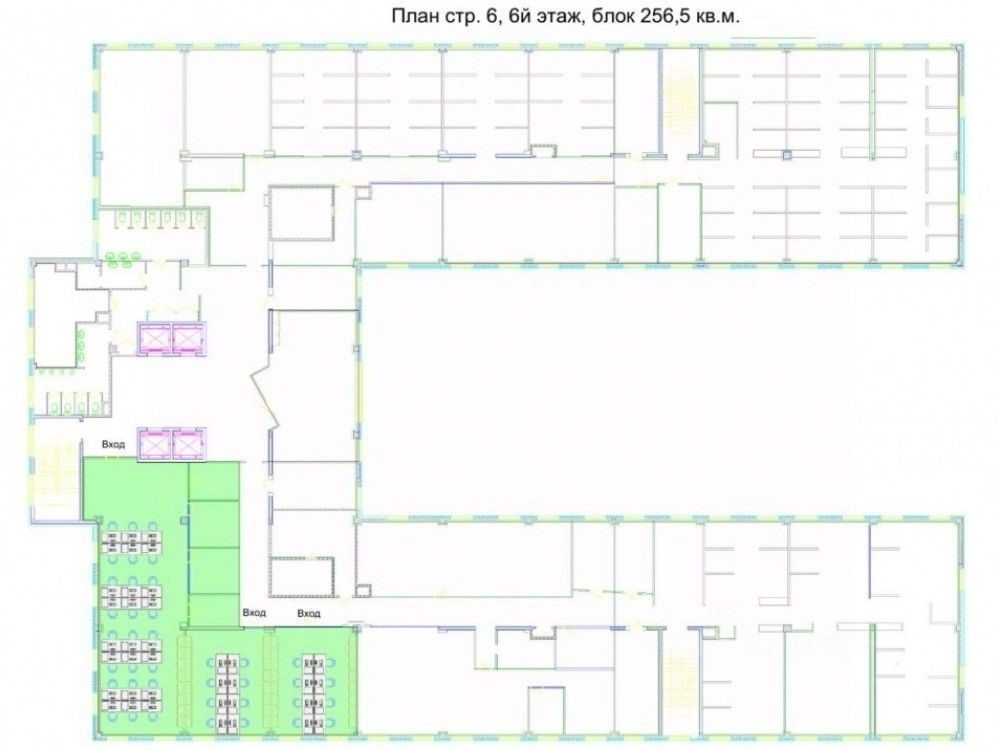 . Строение 6, шестой этаж. Полезная площадь 256,5м2. Смешанная планировка на 40 рабочих мест, ресепшн, гардеробна, с/у на этаже. Выполнена офисная отделка. Установлены системы приторно-вытяжной вентиляции и кондиционирования.