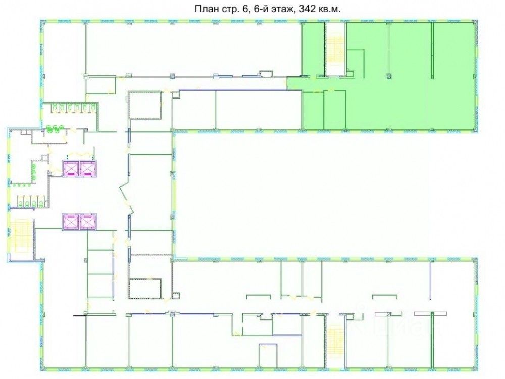 . Строение 6, шестой этаж. Полезная площадь 342м2. Смешанная планировка на 45 рабочих мест, ресепшн, гардеробная, с/у на этаже. Выполнена офисная отделка. Установлены системы приторно-вытяжной вентиляции и кондиционирования.