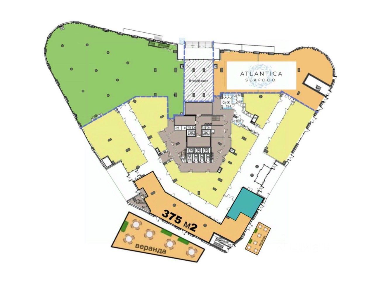 Четыре входа с фасада, большие витринные окна, две летние веранды. Приточно-вытяжная система вентиляции с необходимым сечением, позволяющим разместить общепит с полным циклом. Шикарная визуализация и рекламный потенциал!