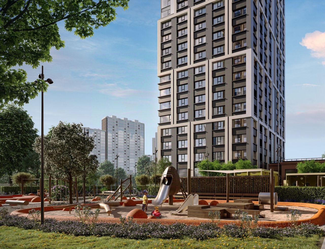 Преимущества проекта: - 4,5 га благоустроенной территории с видовым мостом, уличным кинотеатром, зонами для тихого отдыха, работы, воркаута, площадки для петанка, футбола, настольного тенниса и пляжного волейбола. - Дизайнерские лобби с панорамным видом на двор, мойками для лап животных и комфортными зонами ожидания. - Безопасность жителей: круглосуточное видеонаблюдение всех зон общего пользования (лобби, лифты, паркинги, детские площадки), система контроля доступа, управление видеодомофоном через мобильное приложение, единый ключ доступа на территорию жилого комплекса. - Технологии и комфорт: высокоскоростной Wi-Fi в лобби и на придомовой территории, автоматическая система контроля и учёта ресурсов, абонентская связь с консьержем, распознавание номеров автомобилей при въезде в паркинг и выезде из него.