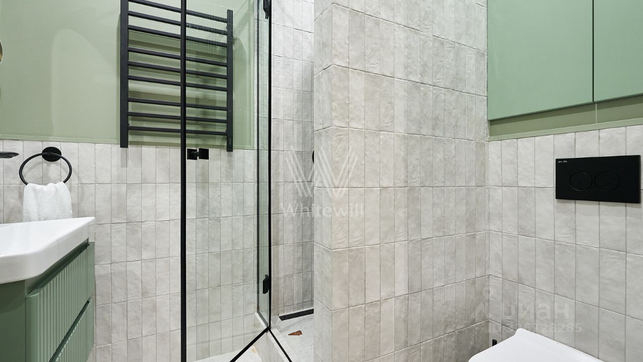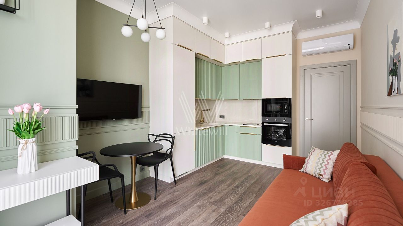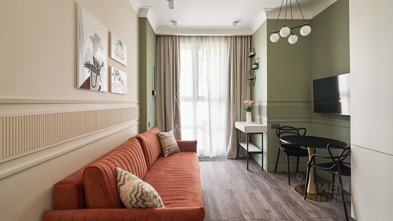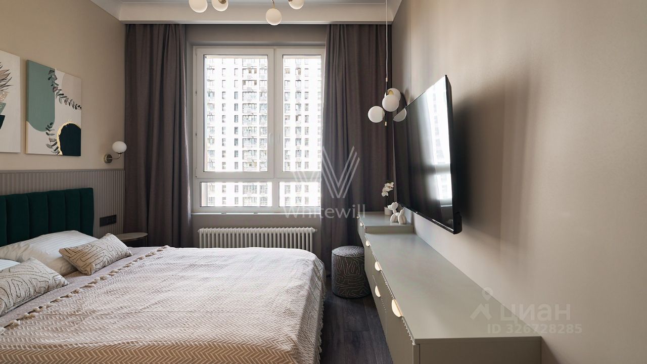 Уютная квартира с 1-й спальней общей площадью 38 м² в комплексе бизнес-класса ''Вереск''. Выполнен новый дизайнерский ремонт в неоклассическом стиле в пастельных тонах. Панорамное окно в гостиной наполняет пространство естественным светом. Окна выходят в тихий двор. Спланирована кухня-гостиная с раскладным диваном, изолированная спальня с вместительным шкафом, гардеробная с постирочной зоной, санузел с душевой, прихожая с гардеробной у входа.