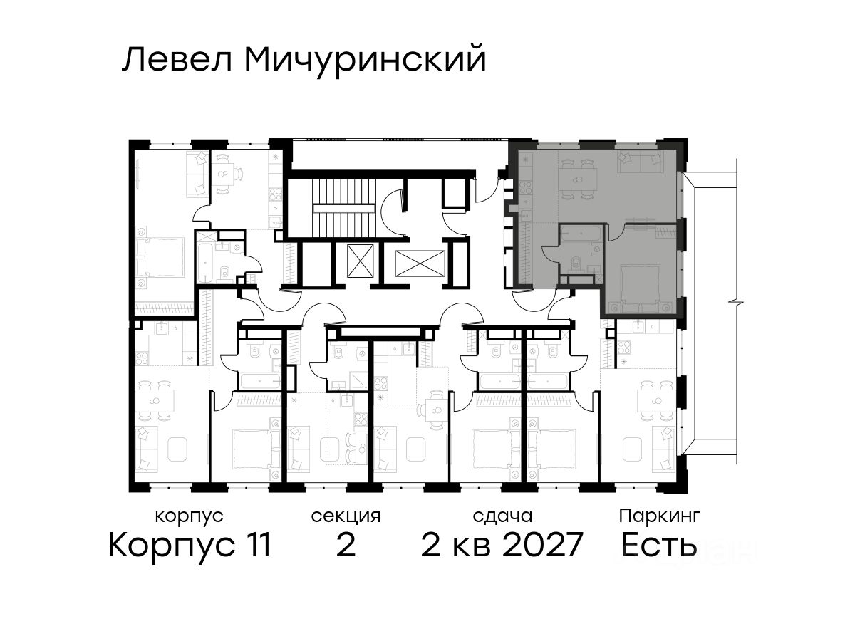 В жилом квартале, расположенном на границе с природным заказником ''Долина реки Очаковки'', продаётся 2-комнатная квартира площадью 41.70 кв.м без отделки. Квартира расположена на 12 этаже 24-этажного корпуса 11 в жилом комплексе бизнес-класса Левел Мичуринский (компания Level Group/Левел групп).