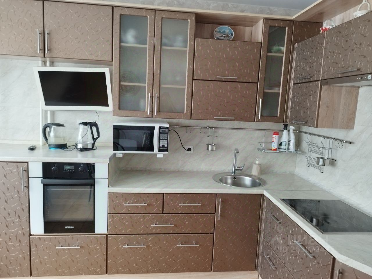 Есть вся необходимая техника, холодильник, стиральная машина, пылесос,паровая швабра для плитки,микроволновка,кондиционеры,телевизоры. Вся мебель и домашний текстиль новые.