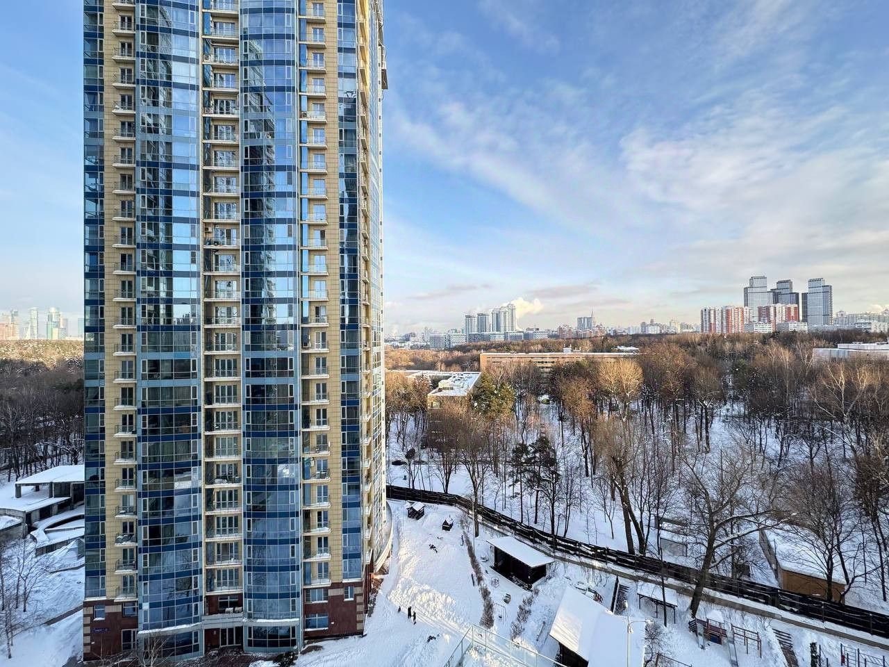 Представьте: вы просыпаетесь, подходите к панорамному окну и перед вами разворачивается живописная панорама: изумрудные массивы Матвеевского леса, уютные городские пейзажи и благоустроенная территория комплекса.