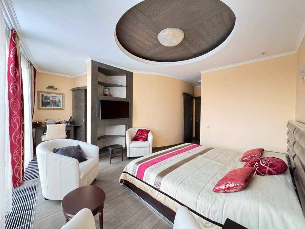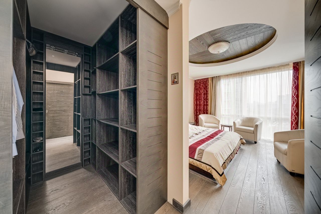 ПРОСТОР И ФУНКЦИОНАЛЬНОСТЬ: На 12м этаже вас ждёт квартира с продуманной планировкой, где каждая зона создана для комфорта: Кухнягостиная с панорамным окном и балконом место, где рождаются кулинарные шедевры и тёплые встречи с друзьями. Прихожая с переговорной зоной и вместительным шкафомкупе удобство с первого шага. Гостевой санузел с душевой кабиной. Стильный стеллаж для вашей библиотеки практичность в каждой детали. Хозяйская зона оазис уединения: светлая мастерспальня с панорамным видом, просторный санузел с ванной и душевой, гардеробная и кабинет.
