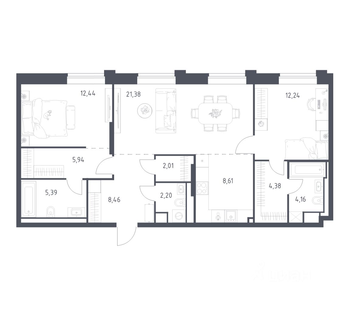 Строим кварталы для жизни с заботой о будущем. Предлагаются 2-комнатные апартаменты бизнес-класса площадью 87,21 кв.м в корпусе 3.1 на 5-м этаже, в жилом комплексе ''Верейская 41''.